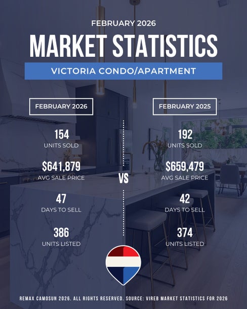 The February 2026 market in Victoria, British Columbia showed a noticeable pickup in activity compared to January, while still trending slightly below the pace seen last year. According to the Victoria Real Estate Board (VREB), a total of 465 properties sold across the region in February, representing an 11.9% decrease compared to February 2025, but a 37.2% increase from January 2026.Breaking down the numbers by property type: