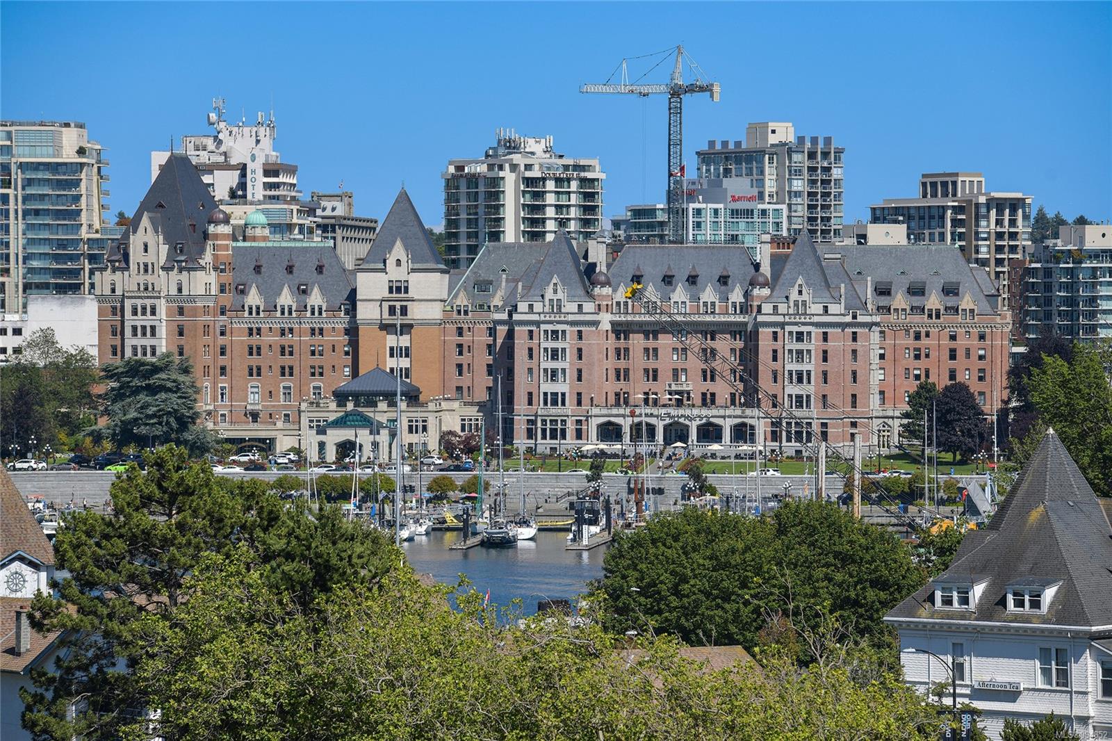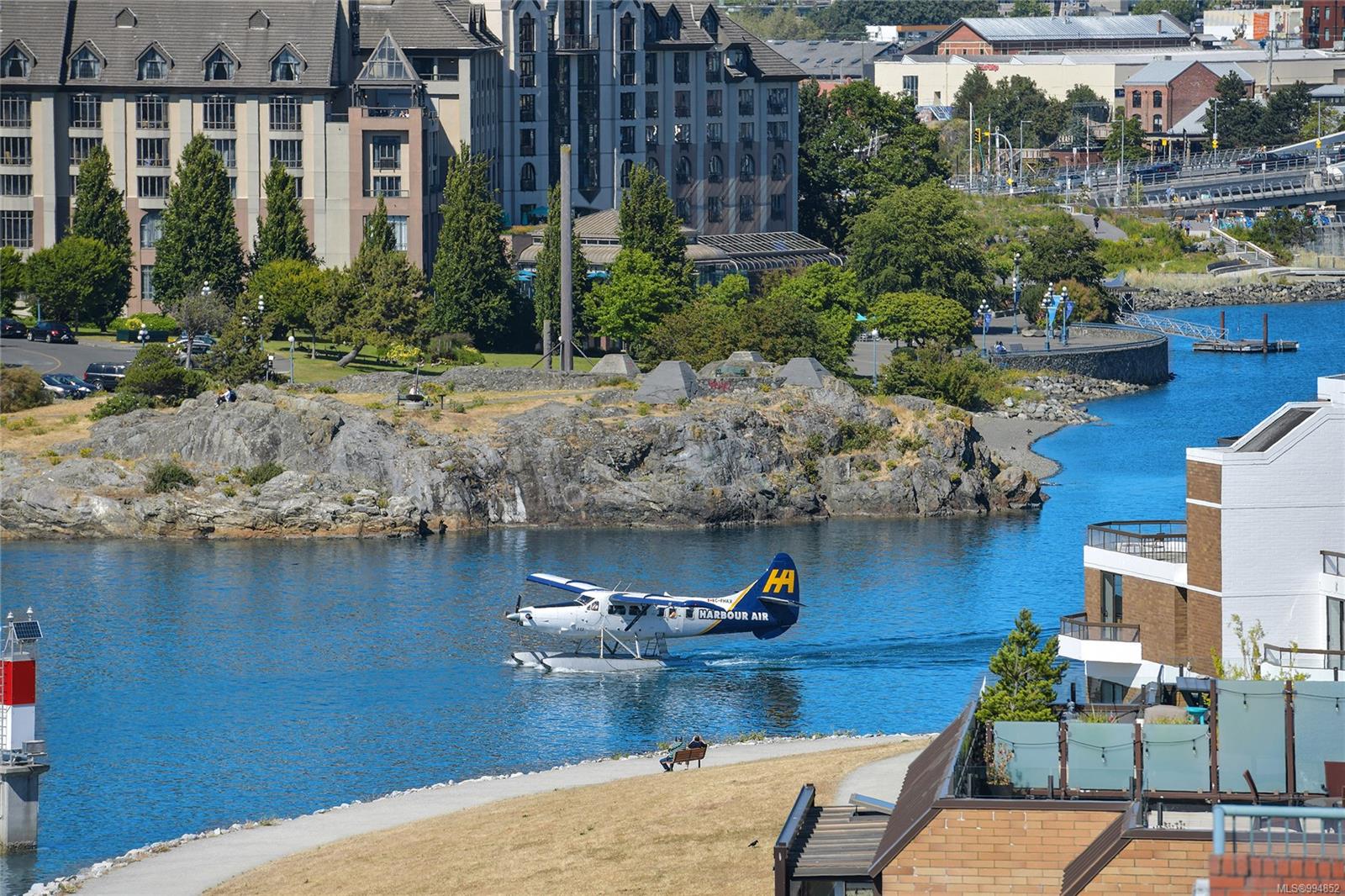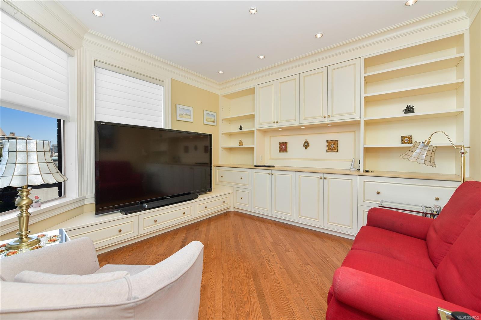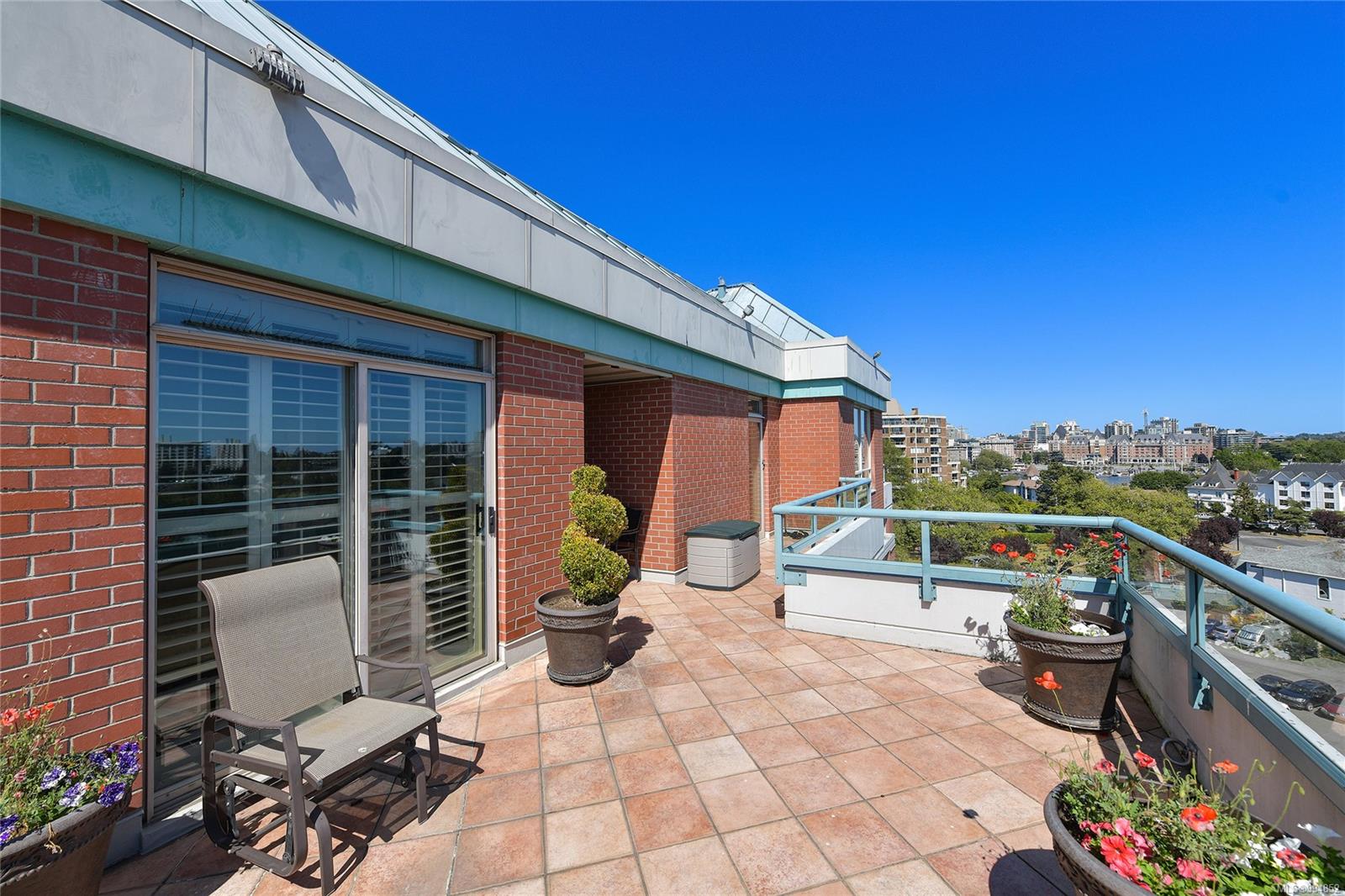 Sweeping, jaw dropping views of Victoria’s acclaimed Inner Harbour. Extremely rare WATERFRONT PENTHOUSE CONDO. This top floor residence offers just over 2600 Sq.Ft. of interior living space ( 2 Beds + Den ) coupled with 4 Deck choices with more than 1100 Sq.ft. providing 360 degree views. Your choice of two front entry ways to brilliant open spaces in your main living/dining/kitchen with heaps of natural daylight. High-end appliances from Wolf, Sub-Zero & Miele compliment the well positioned kitchen with a charming eating nook. Oak H/Wood throughout + stunning tile. 9 Ft. Ceilings. Bedrooms & den are situated on the east wing of the suite providing excellent separation from the living spaces. Relax in your spacious primary suite with its stunning 14’ vaulted ceiling & power blinds. Summertime happy hours will be the envy of the neighbourhood with all your outdoor space. Steel & Concrete Building. 2 side x side parking stalls. Seaside walk paths below + quick access to all amenities in the James Bay and Inner Harbour area. This is a unique and one of a kind condo. Live above it all here at The Harbourside Penthouse Collection. Ask your realtor to secure a private viewing.