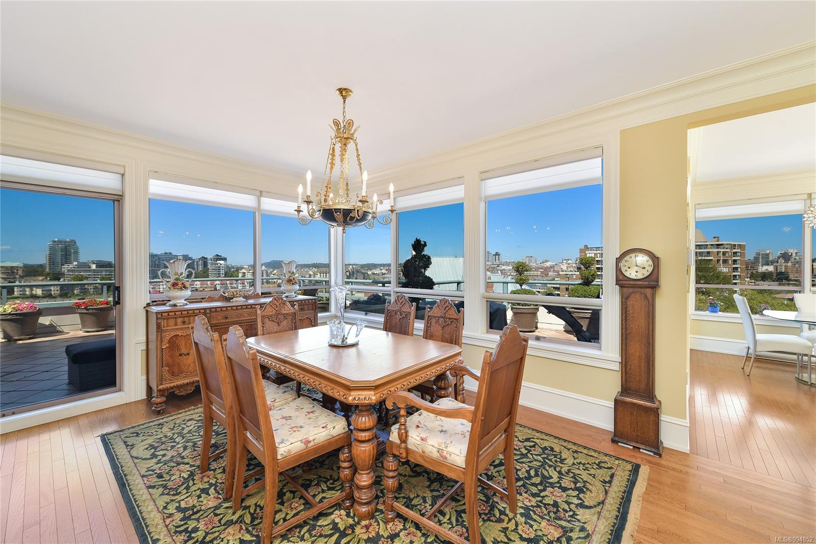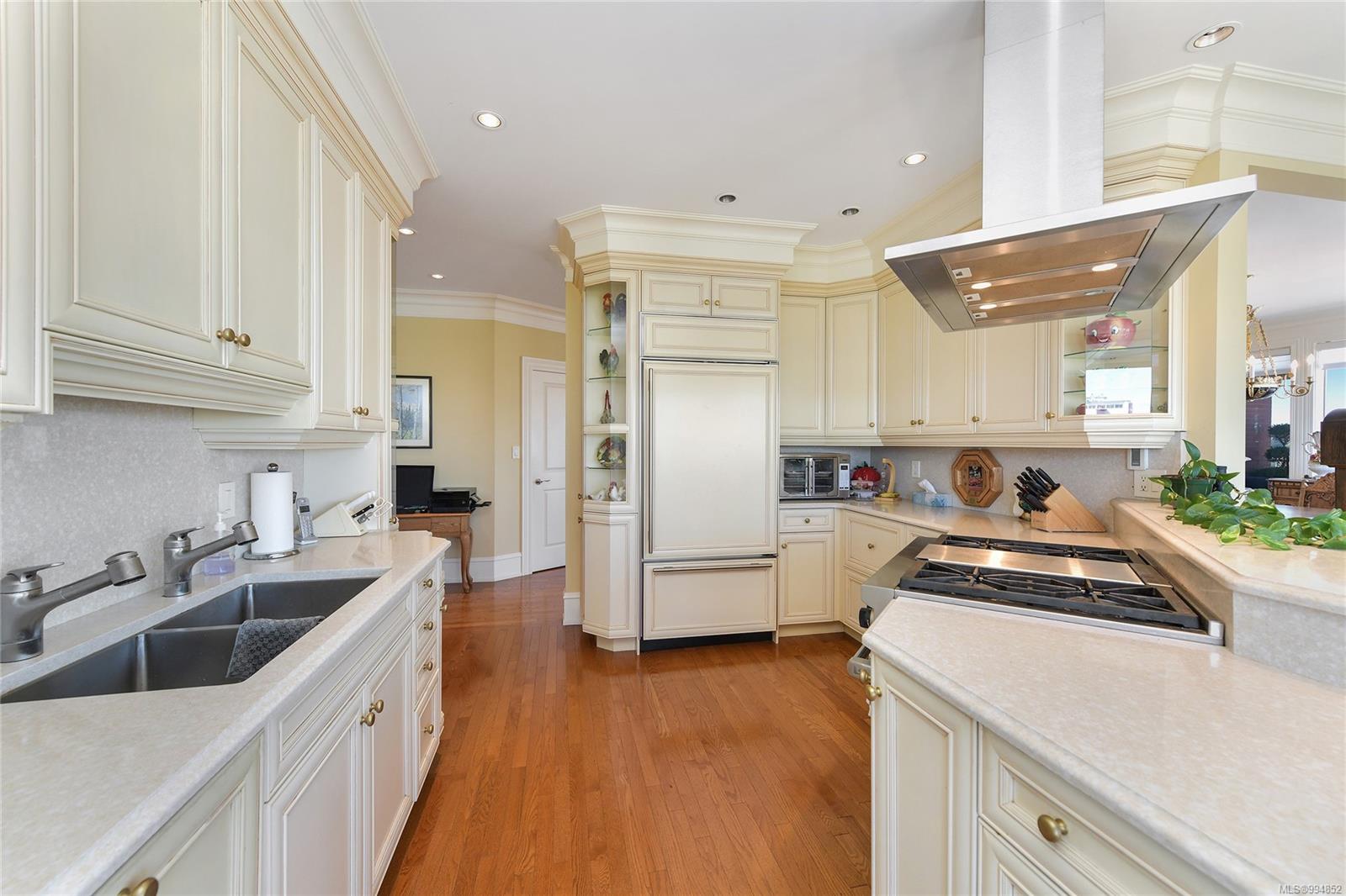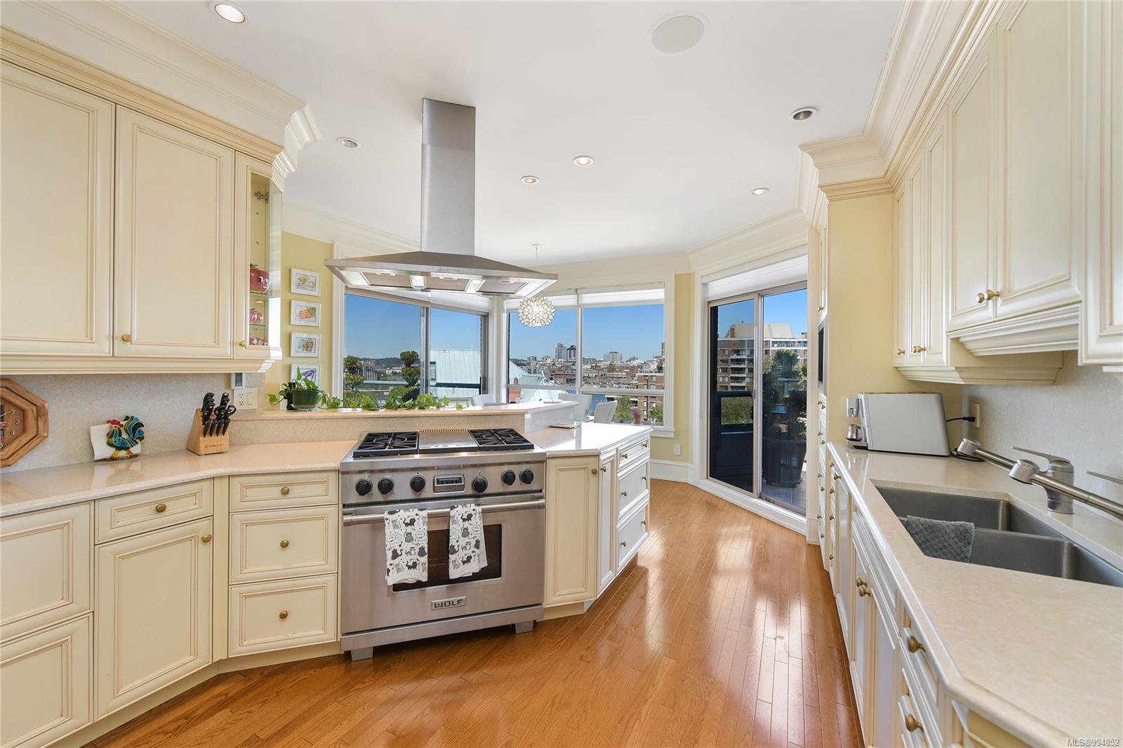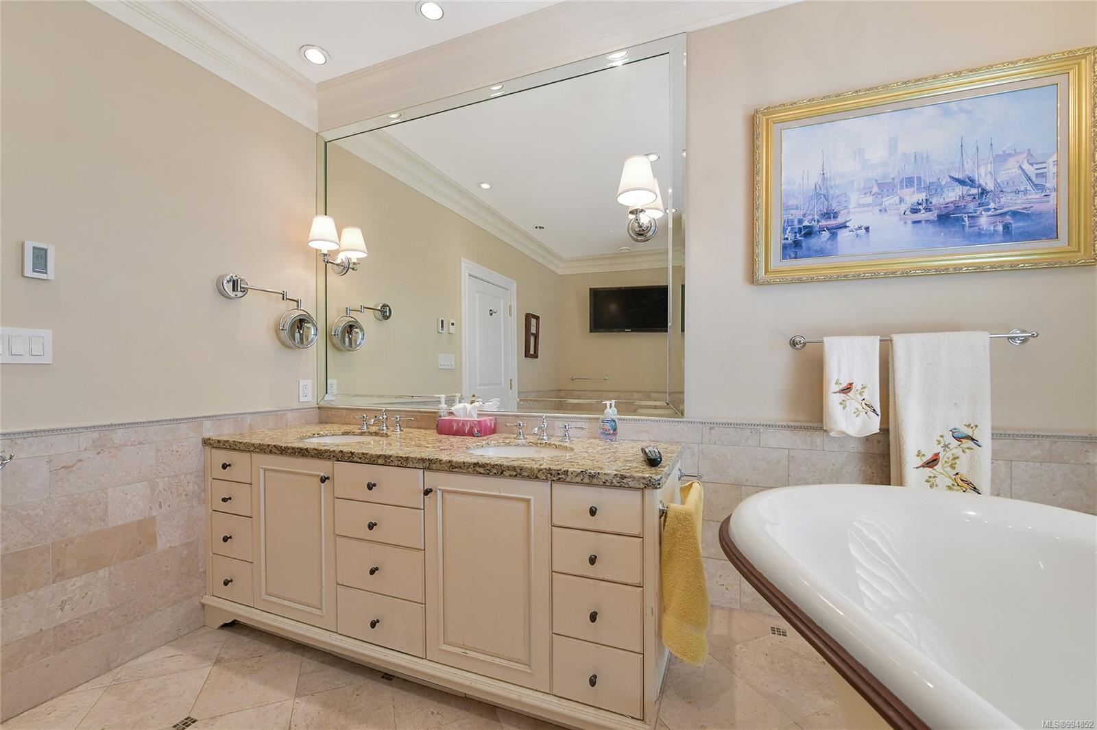 Sweeping, jaw dropping views of Victoria’s acclaimed Inner Harbour. Extremely rare WATERFRONT PENTHOUSE CONDO. This top floor residence offers just over 2600 Sq.Ft. of interior living space ( 2 Beds + Den ) coupled with 4 Deck choices with more than 1100 Sq.ft. providing 360 degree views. Your choice of two front entry ways to brilliant open spaces in your main living/dining/kitchen with heaps of natural daylight. High-end appliances from Wolf, Sub-Zero & Miele compliment the well positioned kitchen with a charming eating nook. Oak H/Wood throughout + stunning tile. 9 Ft. Ceilings. Bedrooms & den are situated on the east wing of the suite providing excellent separation from the living spaces. Relax in your spacious primary suite with its stunning 14’ vaulted ceiling & power blinds. Summertime happy hours will be the envy of the neighbourhood with all your outdoor space. Steel & Concrete Building. 2 side x side parking stalls. Seaside walk paths below + quick access to all amenities in the James Bay and Inner Harbour area. This is a unique and one of a kind condo. Live above it all here at The Harbourside Penthouse Collection. Ask your realtor to secure a private viewing.