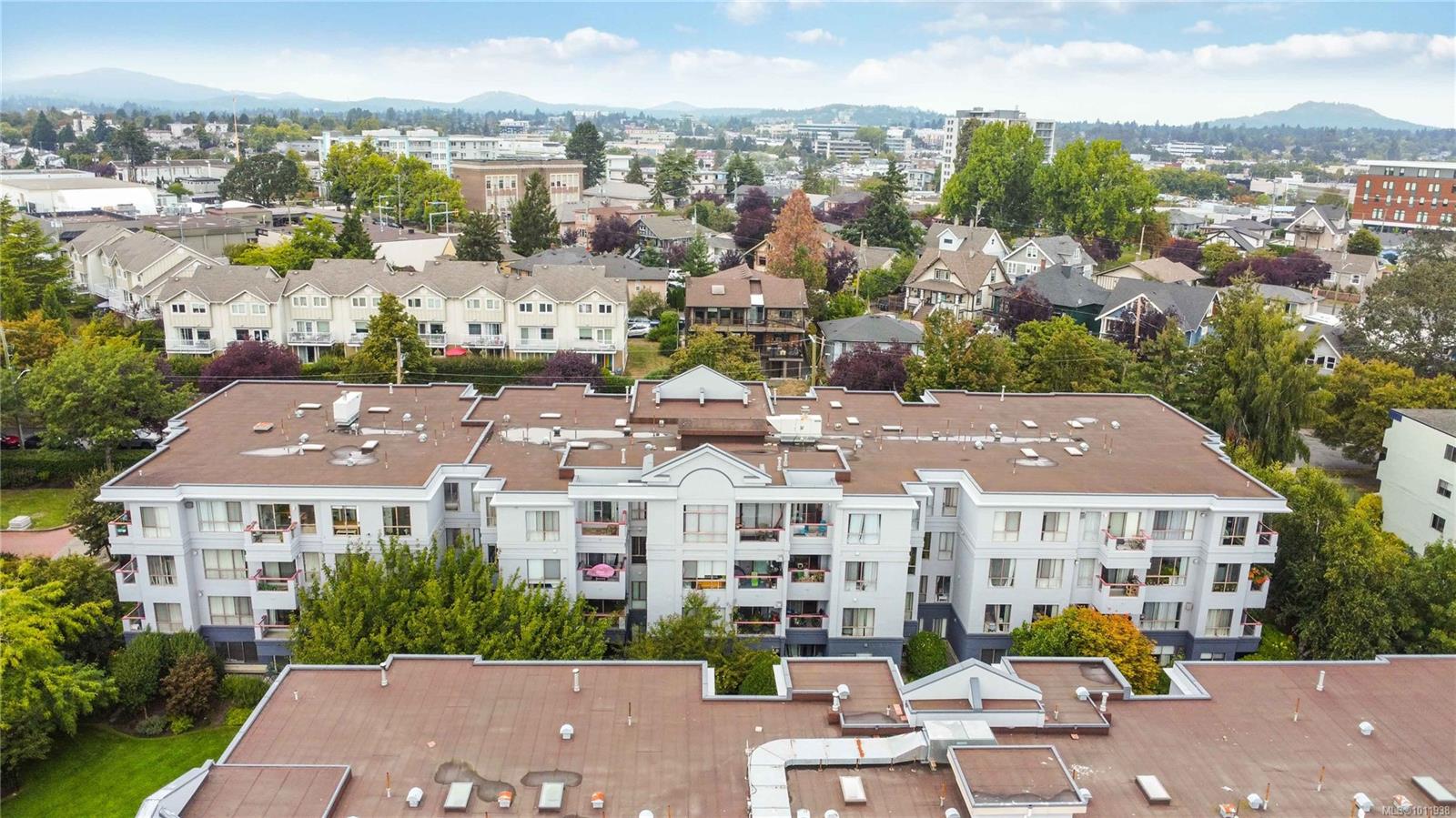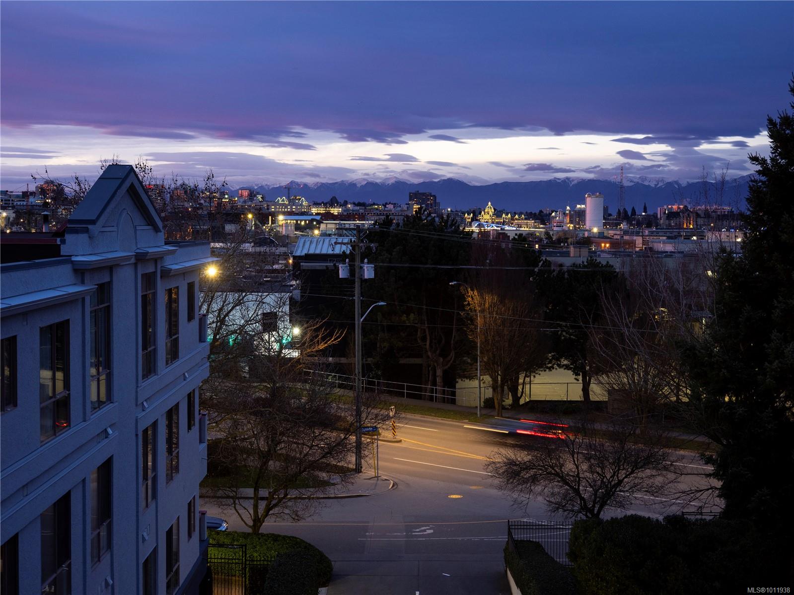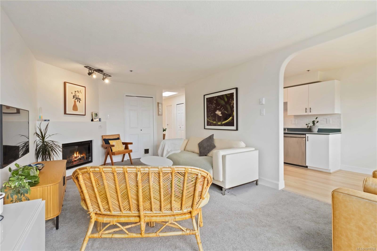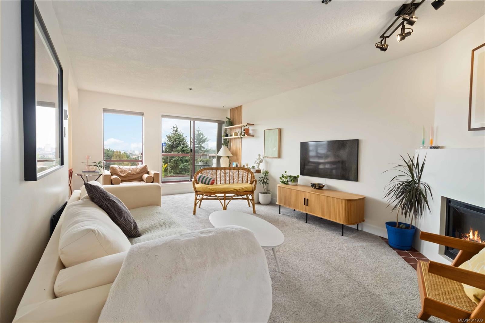 Welcome to this bright, top-floor, south-facing condo with beautiful views of downtown Victoria and the Olympic Mountains. Bathed in natural light, this nearly 1,000 sq ft 2 bed/2 bath home blends comfort and lifestyle. Start your mornings with sunshine and coffee on the balcony, and end your day by the cozy new fireplace. The spacious layout features expansive windows, a generous primary suite with walk-through closet and ensuite, plus recent updates: kitchen and bath flooring, fresh paint, lighting, hot water tank, washer/dryer, and more. Enjoy the convenience of in-suite laundry, secure underground parking, and a storage locker in a professionally managed, pet-friendly building. Set on well-maintained grounds with plenty of green space for kids to play, this home is nestled on a quiet residential street near the Selkirk Waterfront, Downtown, Mayfair Mall, parks, and transit. With stunning views, thoughtful updates, and a location that can’t be beat, this condo strikes the perfect balance of style and comfort. It just feels like home the moment you walk in.