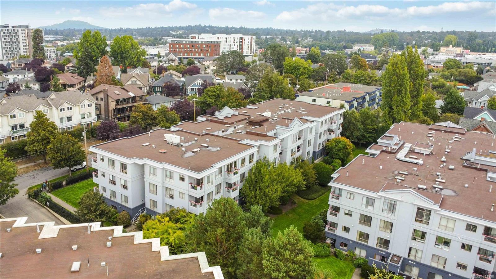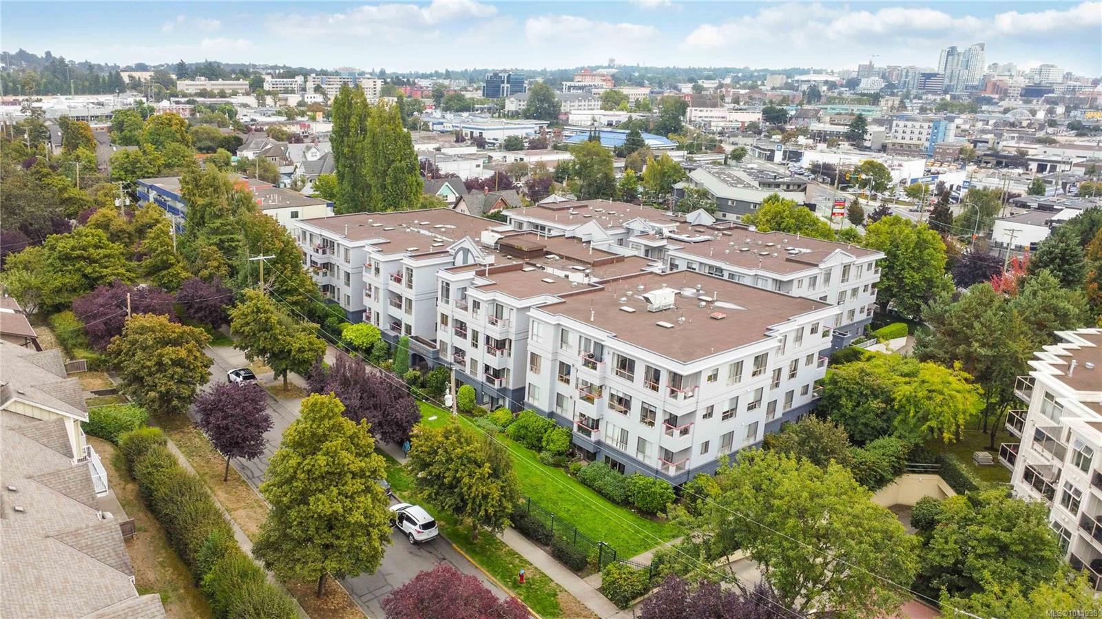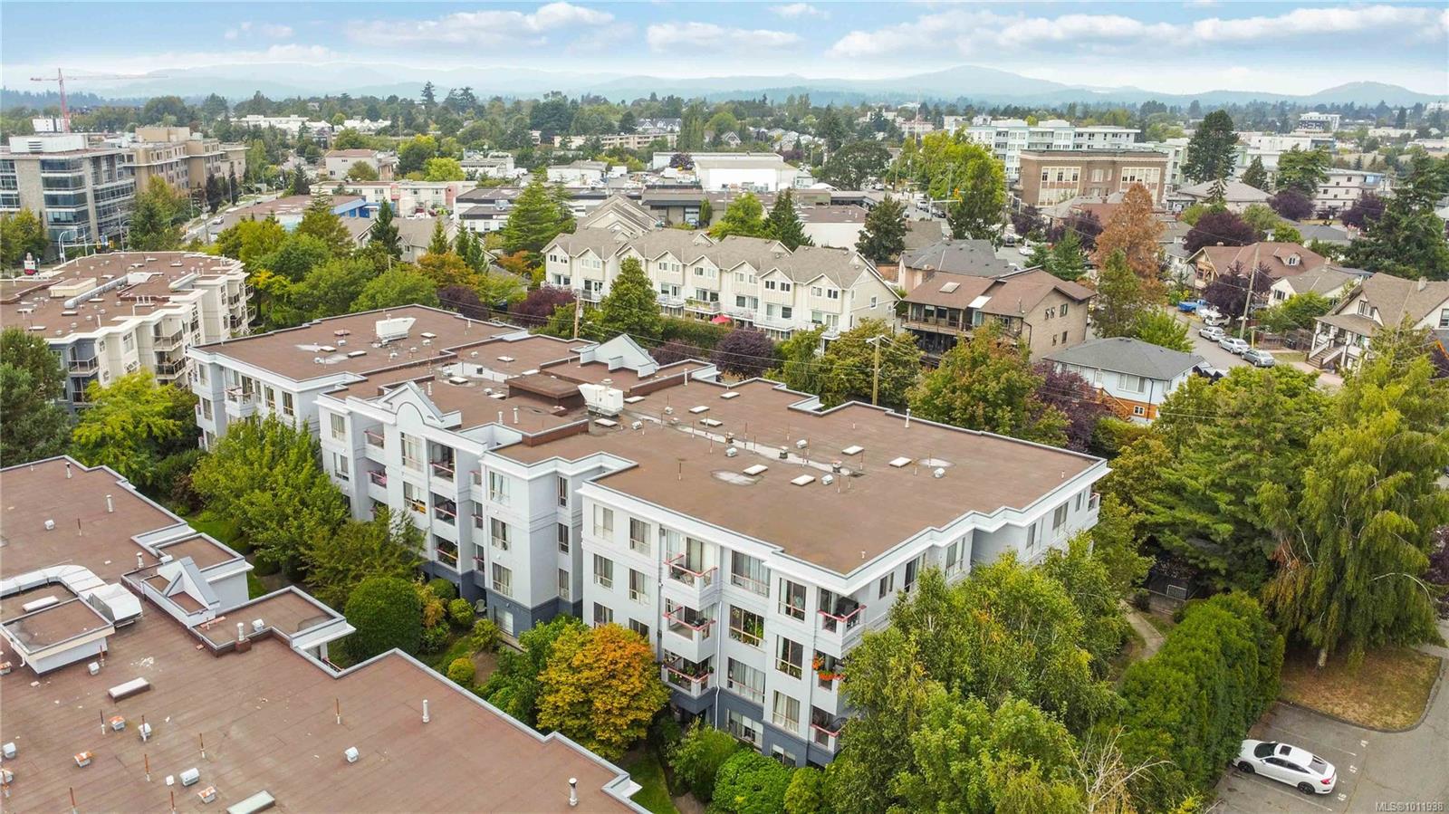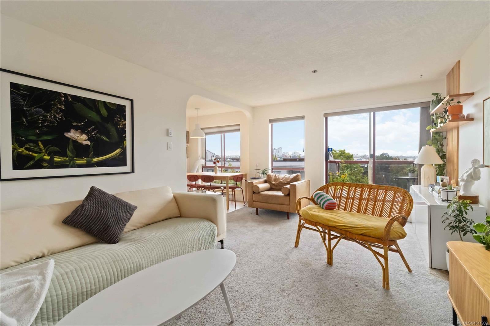 Welcome to this bright, top-floor, south-facing condo with beautiful views of downtown Victoria and the Olympic Mountains. Bathed in natural light, this nearly 1,000 sq ft 2 bed/2 bath home blends comfort and lifestyle. Start your mornings with sunshine and coffee on the balcony, and end your day by the cozy new fireplace. The spacious layout features expansive windows, a generous primary suite with walk-through closet and ensuite, plus recent updates: kitchen and bath flooring, fresh paint, lighting, hot water tank, washer/dryer, and more. Enjoy the convenience of in-suite laundry, secure underground parking, and a storage locker in a professionally managed, pet-friendly building. Set on well-maintained grounds with plenty of green space for kids to play, this home is nestled on a quiet residential street near the Selkirk Waterfront, Downtown, Mayfair Mall, parks, and transit. With stunning views, thoughtful updates, and a location that can’t be beat, this condo strikes the perfect balance of style and comfort. It just feels like home the moment you walk in.
