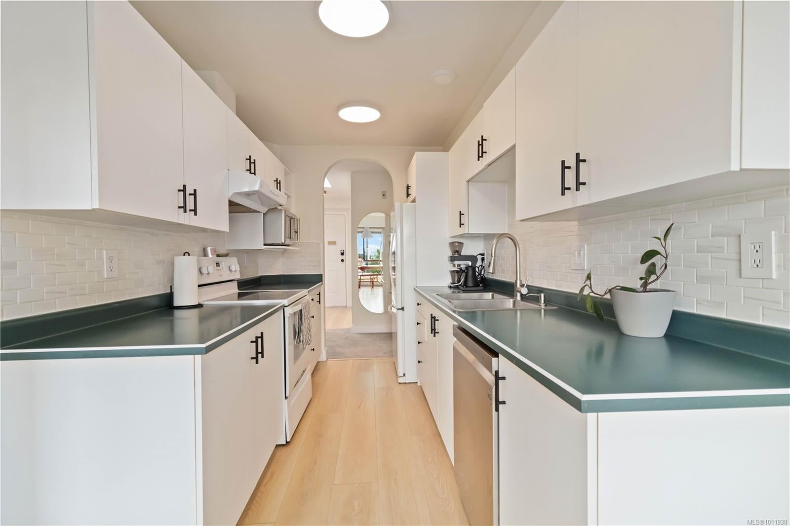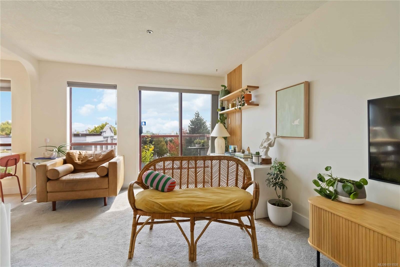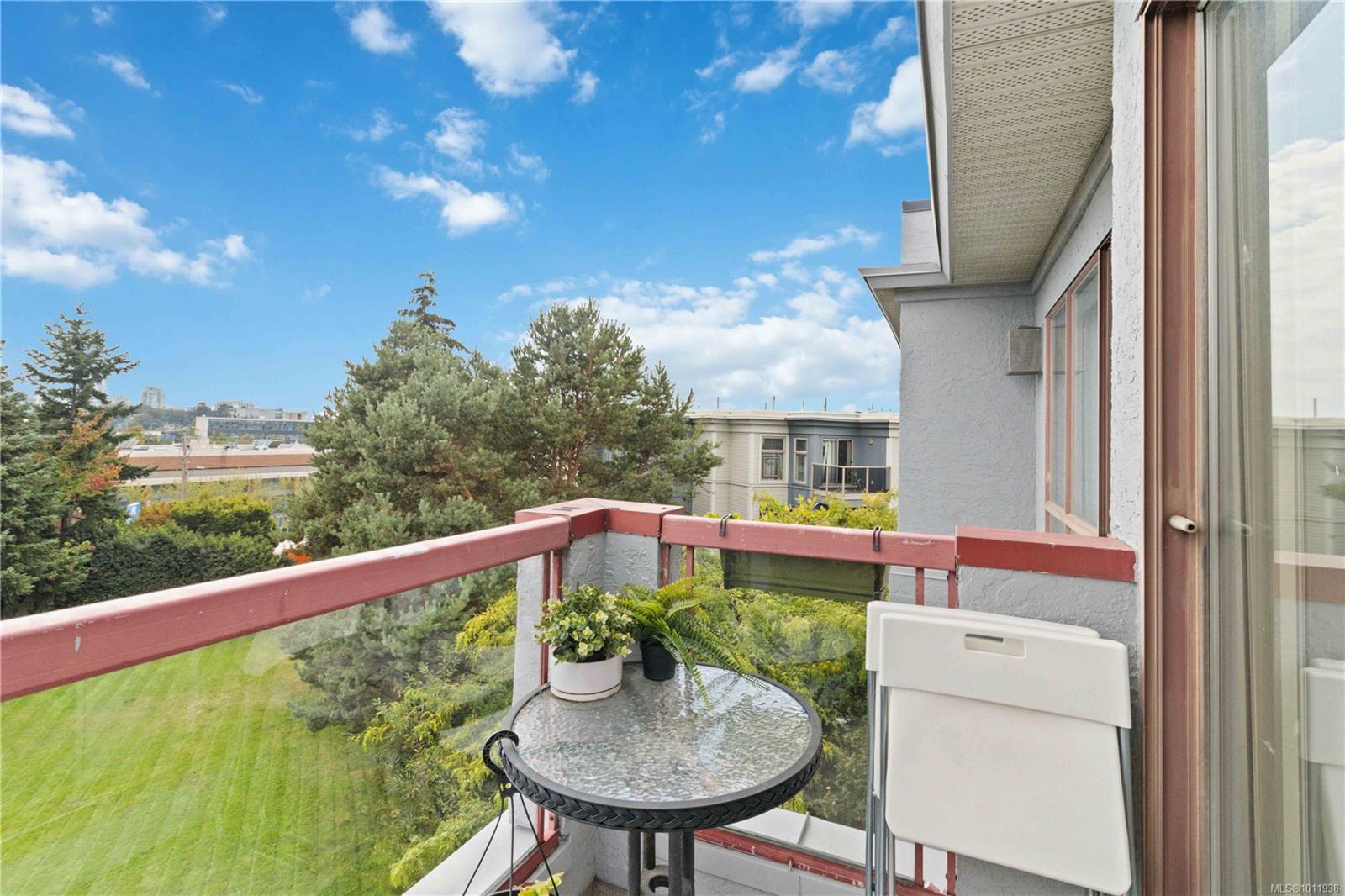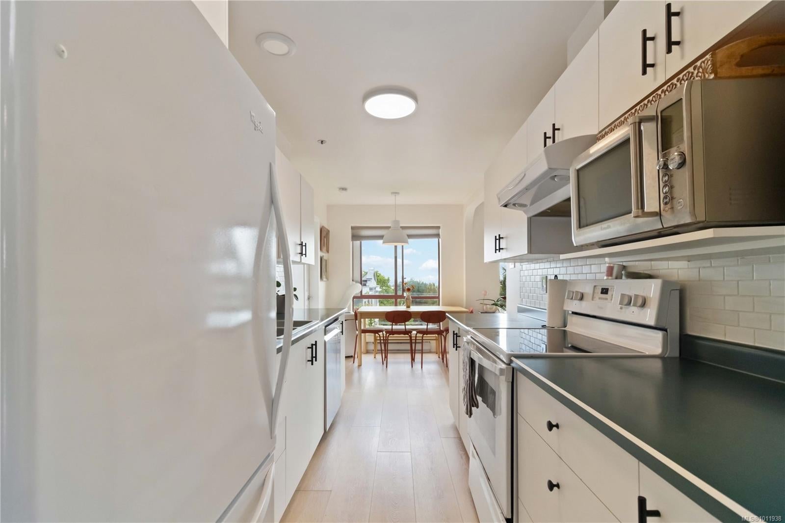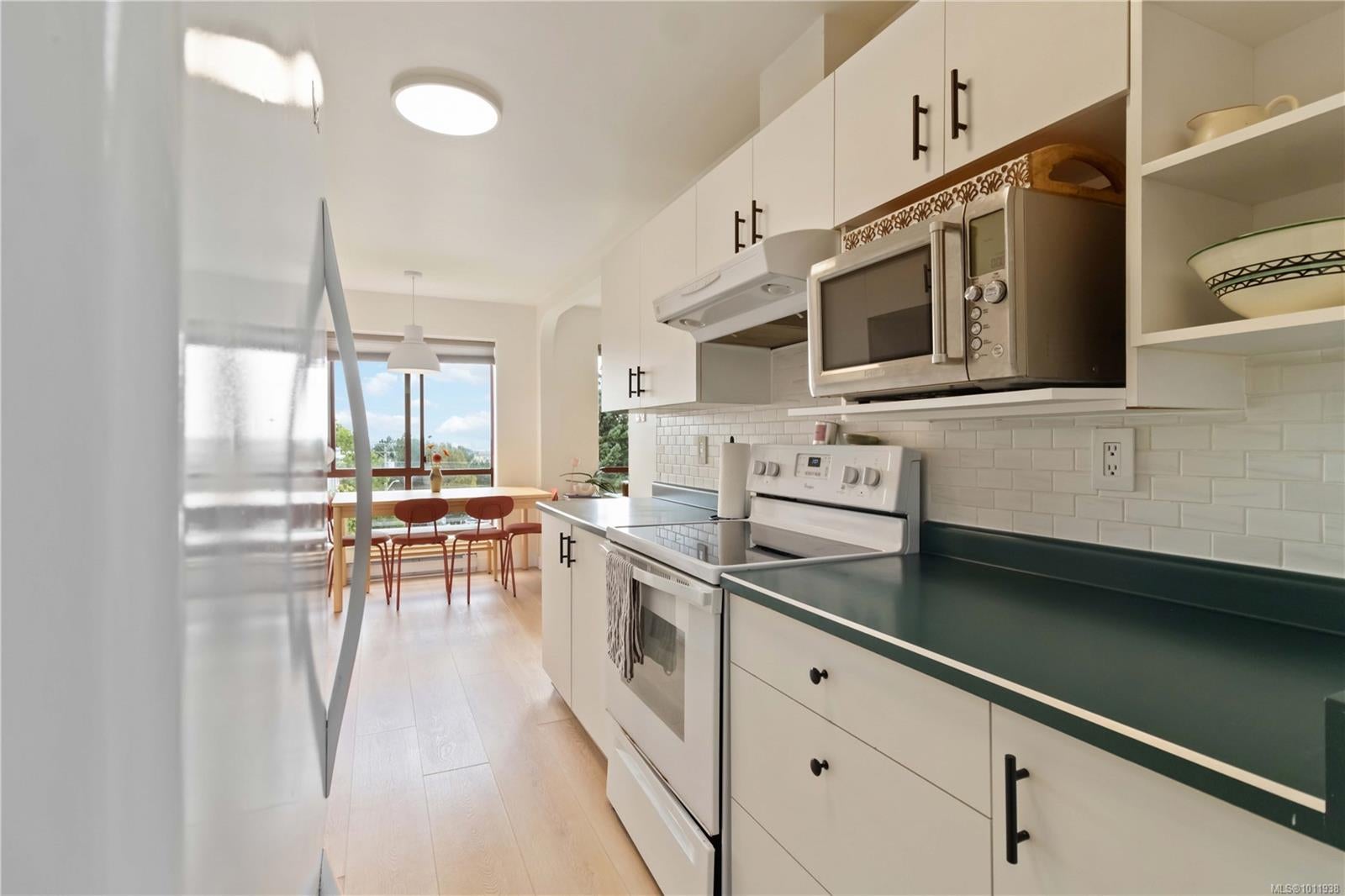 Welcome to this bright, top-floor, south-facing condo with beautiful views of downtown Victoria and the Olympic Mountains. Bathed in natural light, this nearly 1,000 sq ft 2 bed/2 bath home blends comfort and lifestyle. Start your mornings with sunshine and coffee on the balcony, and end your day by the cozy new fireplace. The spacious layout features expansive windows, a generous primary suite with walk-through closet and ensuite, plus recent updates: kitchen and bath flooring, fresh paint, lighting, hot water tank, washer/dryer, and more. Enjoy the convenience of in-suite laundry, secure underground parking, and a storage locker in a professionally managed, pet-friendly building. Set on well-maintained grounds with plenty of green space for kids to play, this home is nestled on a quiet residential street near the Selkirk Waterfront, Downtown, Mayfair Mall, parks, and transit. With stunning views, thoughtful updates, and a location that can’t be beat, this condo strikes the perfect balance of style and comfort. It just feels like home the moment you walk in.