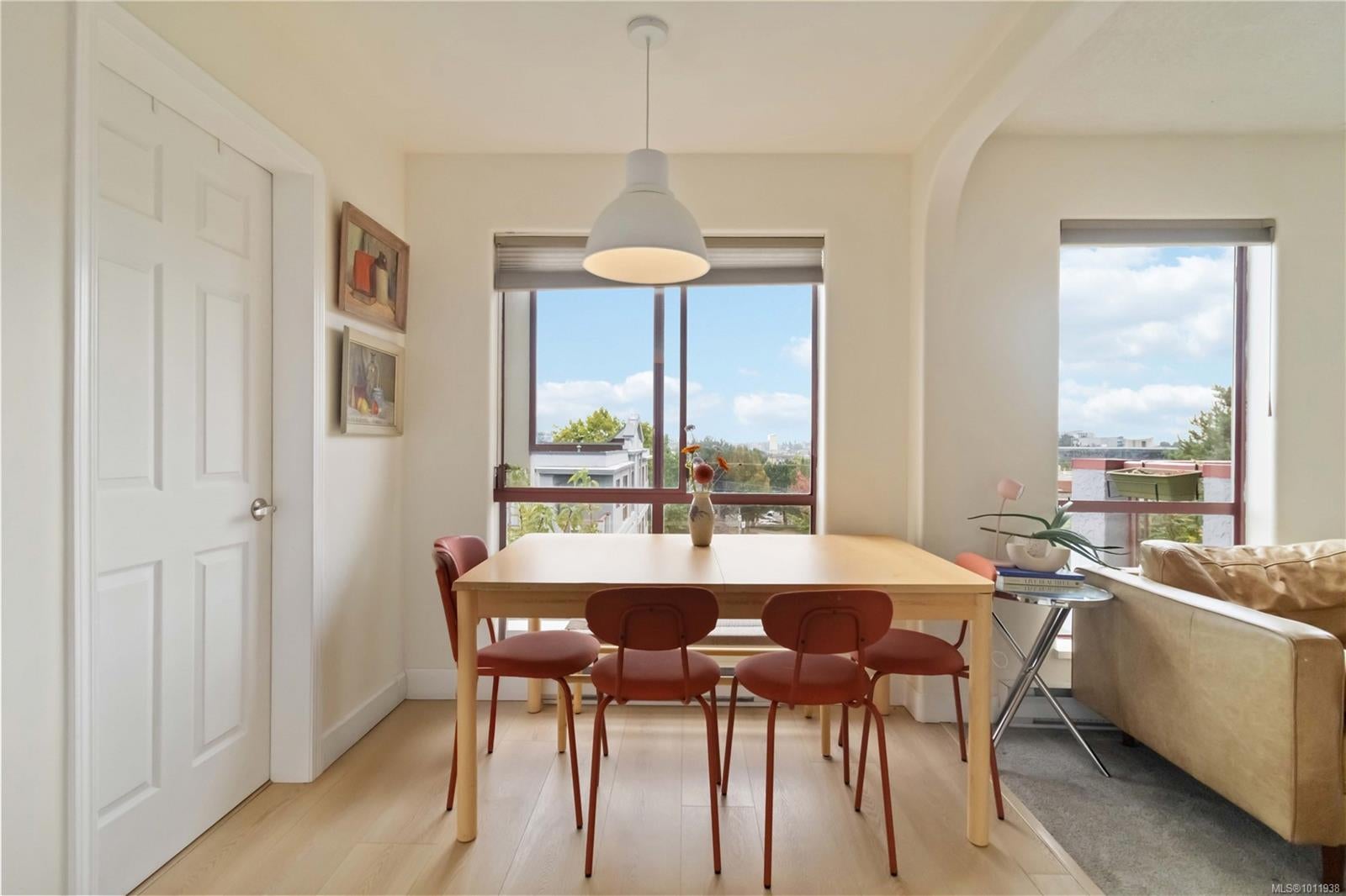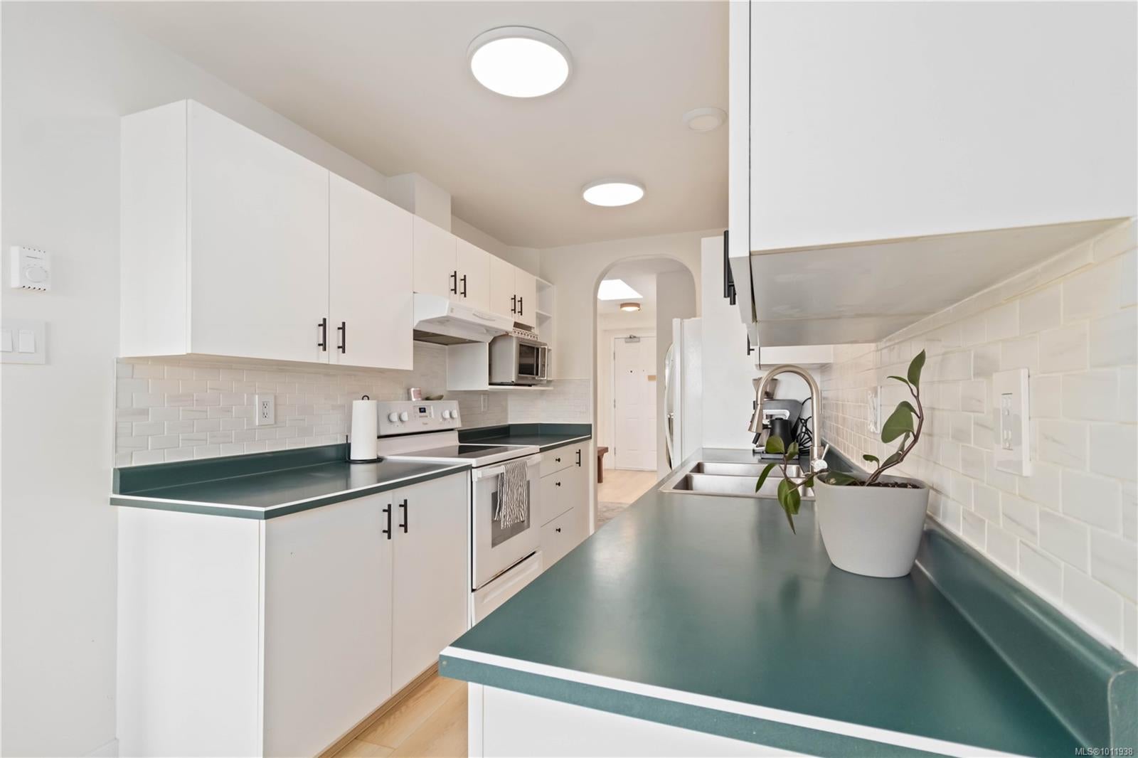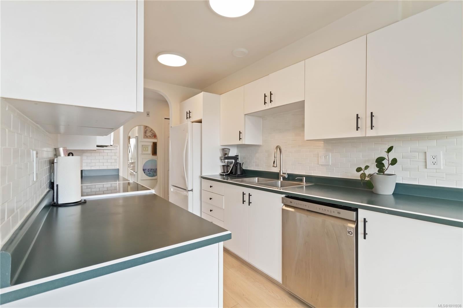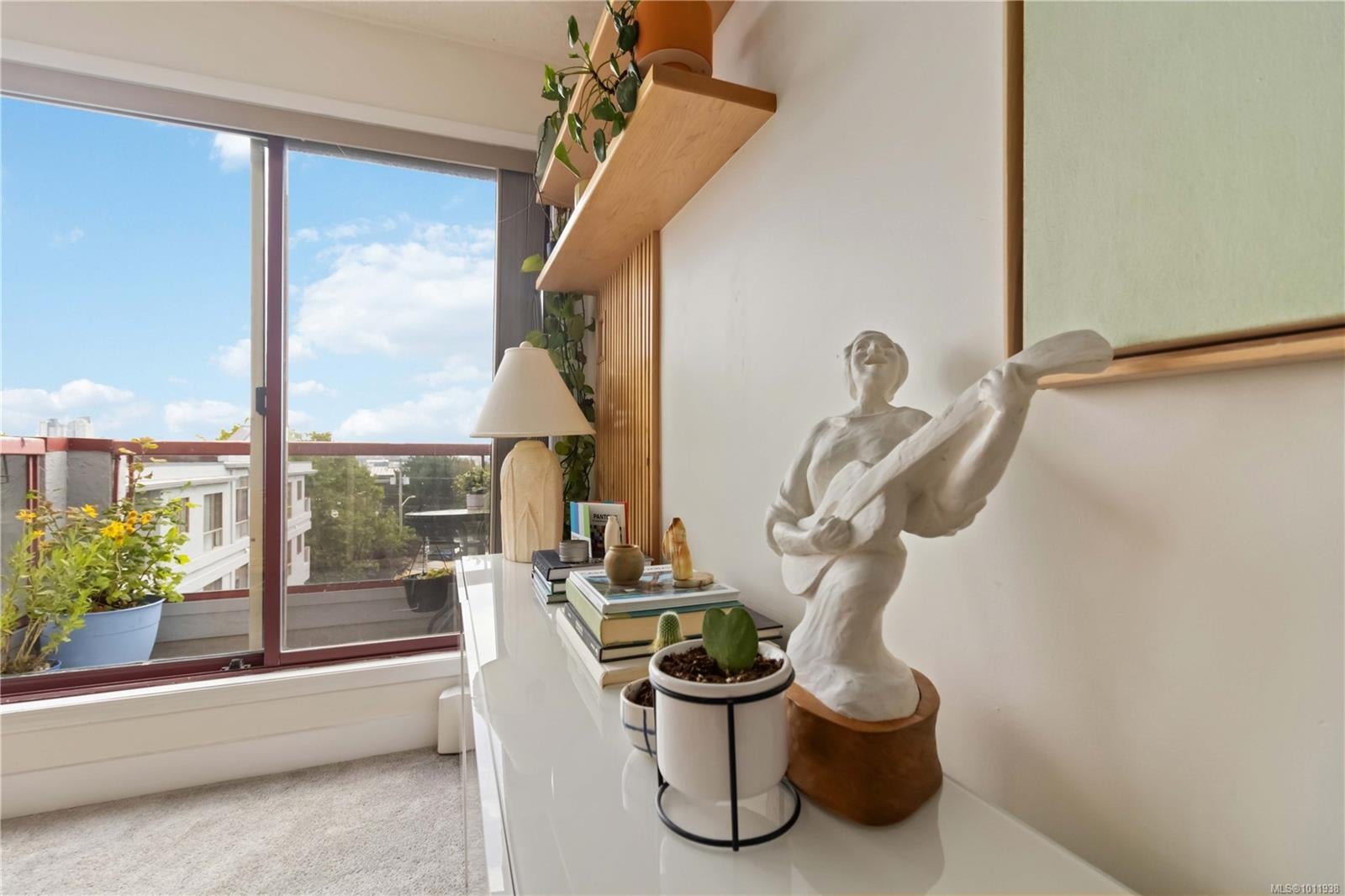 Welcome to this bright, top-floor, south-facing condo with beautiful views of downtown Victoria and the Olympic Mountains. Bathed in natural light, this nearly 1,000 sq ft 2 bed/2 bath home blends comfort and lifestyle. Start your mornings with sunshine and coffee on the balcony, and end your day by the cozy new fireplace. The spacious layout features expansive windows, a generous primary suite with walk-through closet and ensuite, plus recent updates: kitchen and bath flooring, fresh paint, lighting, hot water tank, washer/dryer, and more. Enjoy the convenience of in-suite laundry, secure underground parking, and a storage locker in a professionally managed, pet-friendly building. Set on well-maintained grounds with plenty of green space for kids to play, this home is nestled on a quiet residential street near the Selkirk Waterfront, Downtown, Mayfair Mall, parks, and transit. With stunning views, thoughtful updates, and a location that can’t be beat, this condo strikes the perfect balance of style and comfort. It just feels like home the moment you walk in.