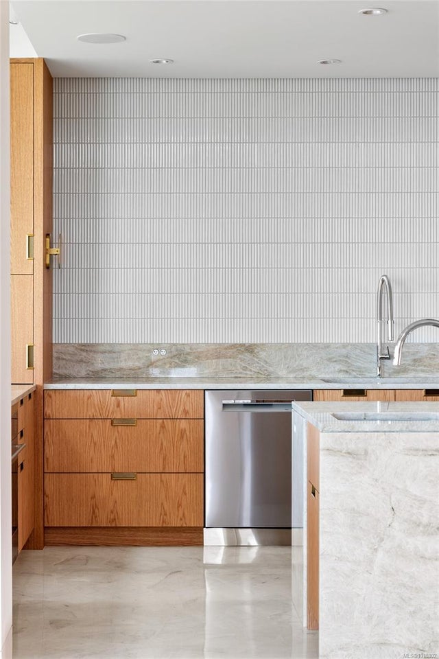 Welcome to Celosia. A sophisticated oceanfront home built by GT Mann from a Ryan Hoyt design. Jenny Martin Design rounds out the award-winning team to create a living experience worthy of its breathtaking oceanfront setting. Timeless Mid-Century Modern elements blend seamlessly with comfortable elegance & a hint of Italian flair. At the heart of the home lies a stunning kitchen featuring custom oak cabinetry, Taj Mahal quartzite counters & island with Palladiana marble flooring made onsite from a local quarry—truly one of a kind. Premium Wolf, Sub-Zero & Dacor appliances elevate the culinary experience. The living room is bathed in light from clerestory windows & anchored by a striking stone fireplace with custom surround. Hidden behind bespoke millwork is a charming record niche—one of many thoughtful details. Two primary suites capture sweeping ocean views, each a private retreat with warm oak flooring, imported Japanese wallpaper & spa-inspired ensuites. A guest wing with two additional bedrooms & a 5-piece bathroom offers the same comfort & luxury. The lower level is designed for wellness & play, featuring a gym area, workspace & games area. An elevator serves all levels, ensuring accessibility. Perhaps the most impressive feature is the four-season patio, wrapped in a Lumon glass system with frameless, retractable floor-to-ceiling panels. Flagstone floors, a gas fire table, radiant ceiling heat & a concealed hood fan make this the perfect year-round gathering space. Step outside to beautifully landscaped grounds & take in panoramic ocean vistas—a front-row seat to nature’s rhythm, framed by the home’s coastal serenity. Located near UVic, schools & shopping, this oceanfront residence is one of Victoria’s truly exceptional properties, offering a lifestyle & setting that are simply unmatched. Celosia is more than a home; it is a work of art—meticulously built for those who value design integrity, luxury materials & timeless architecture.